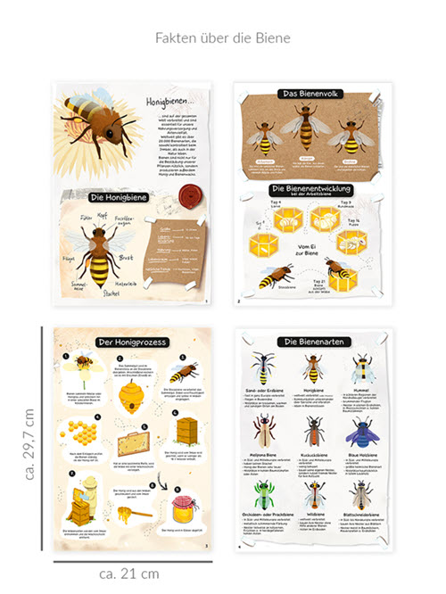 Dieses Activity-Heft im A4-Format enthält 4 Infoseiten mit vielen wissenswerten Infos und Fakten rund um Bienen. Empfohlen für neugierige Kinder ab 6 Jahren.