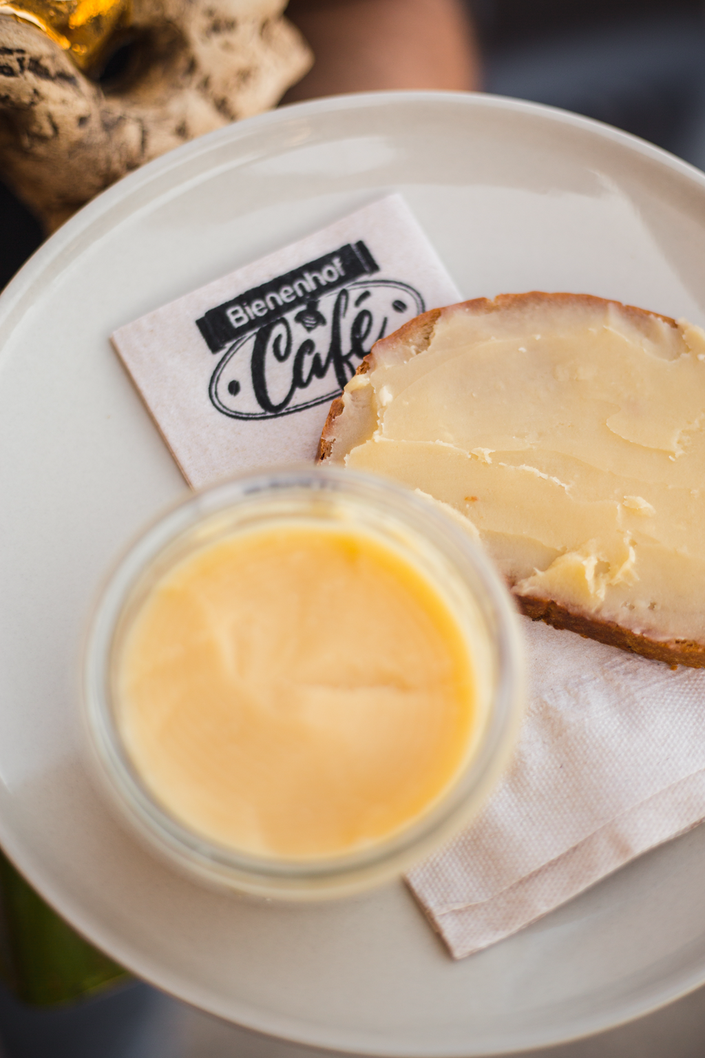 Eine Mischung aus feinstem Bio-Honig und Bio-Butter und sonst nichts. Ideal fürs Frühstück oder als Energie-Snack zwischendurch. Besonders auch für Kinder, weil‘s nicht vom Brot tropft.