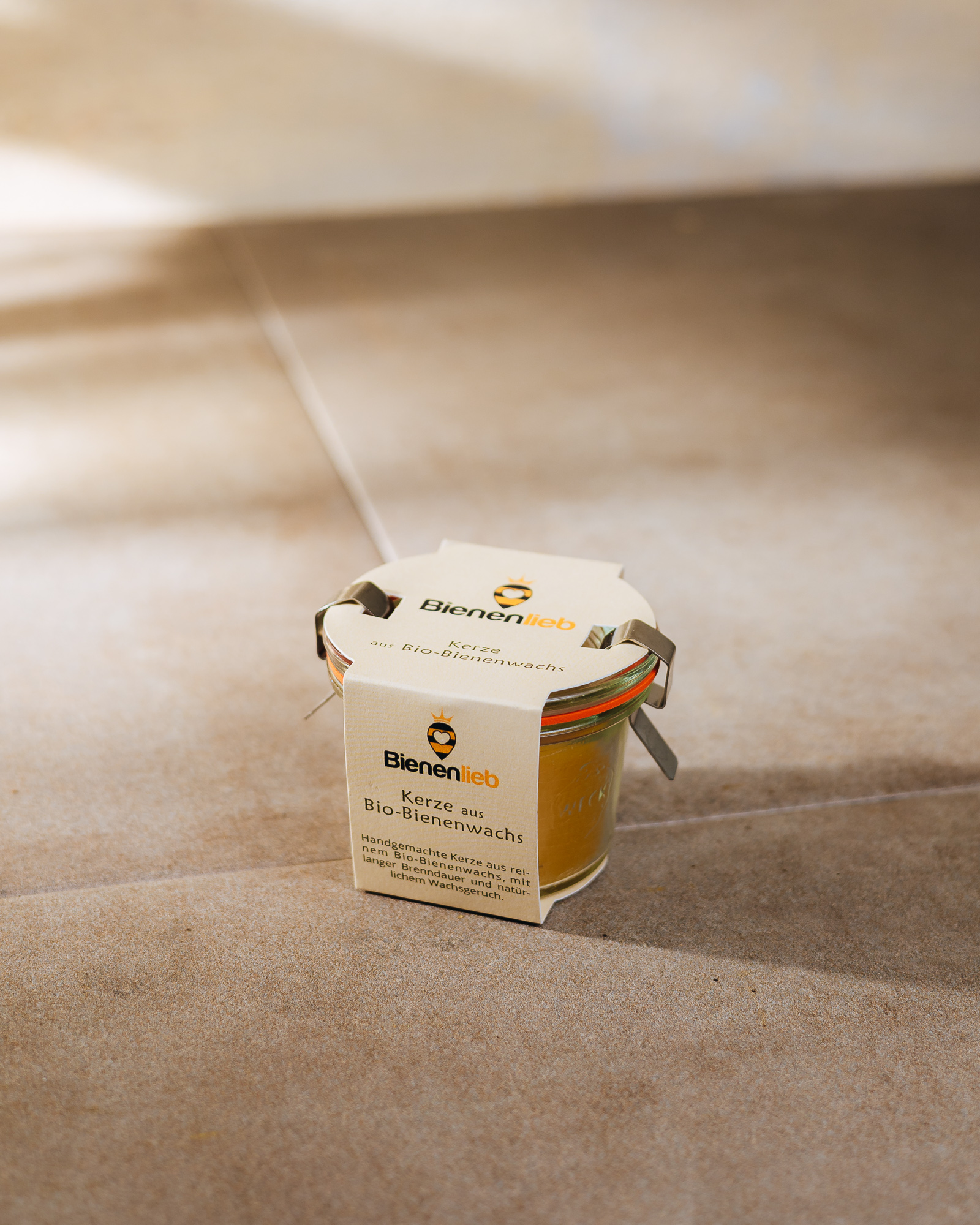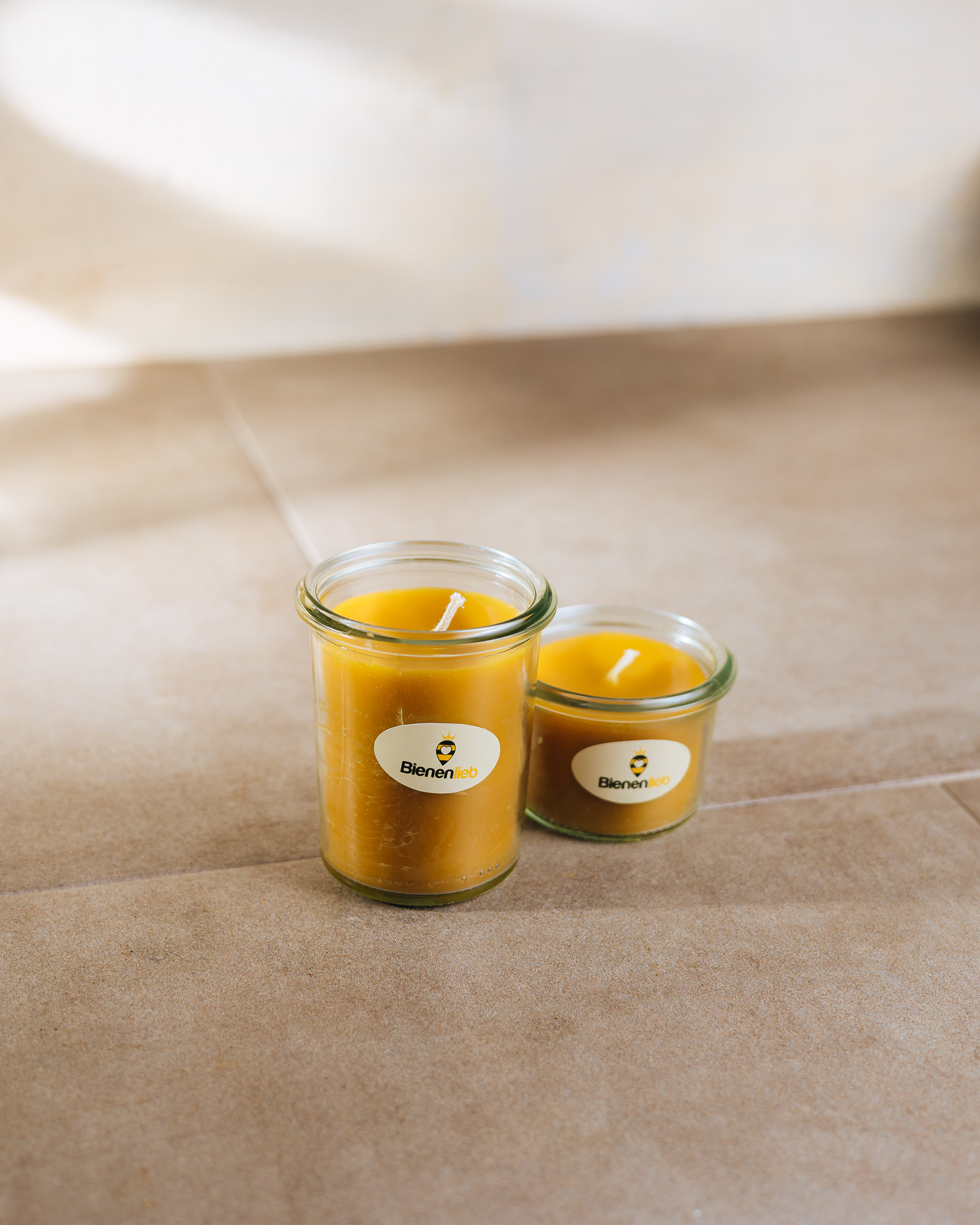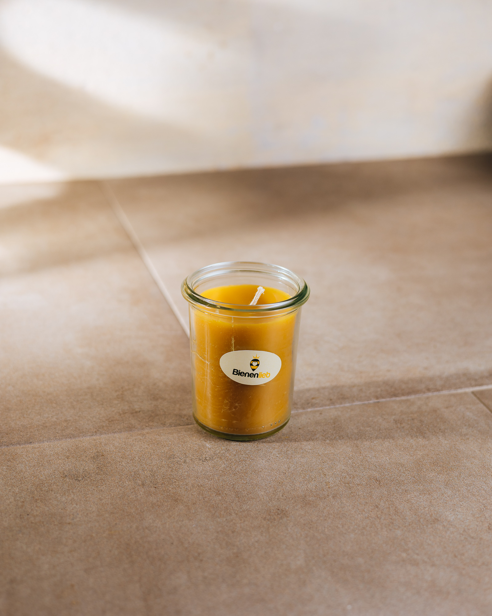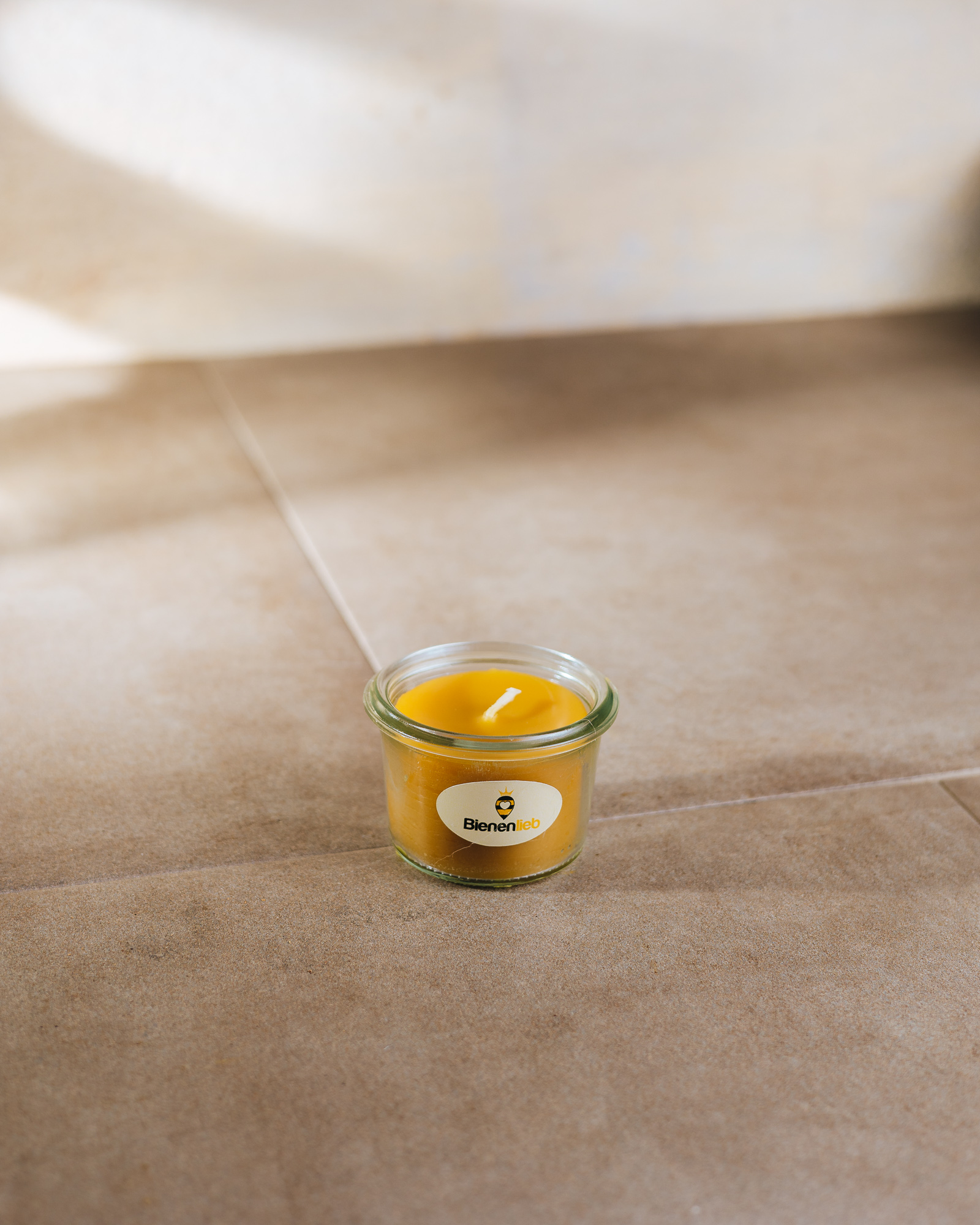 Genießen Sie den besonderen Duft von reinem Bienenwachs. Das Glas kann wiederverwendet werden.