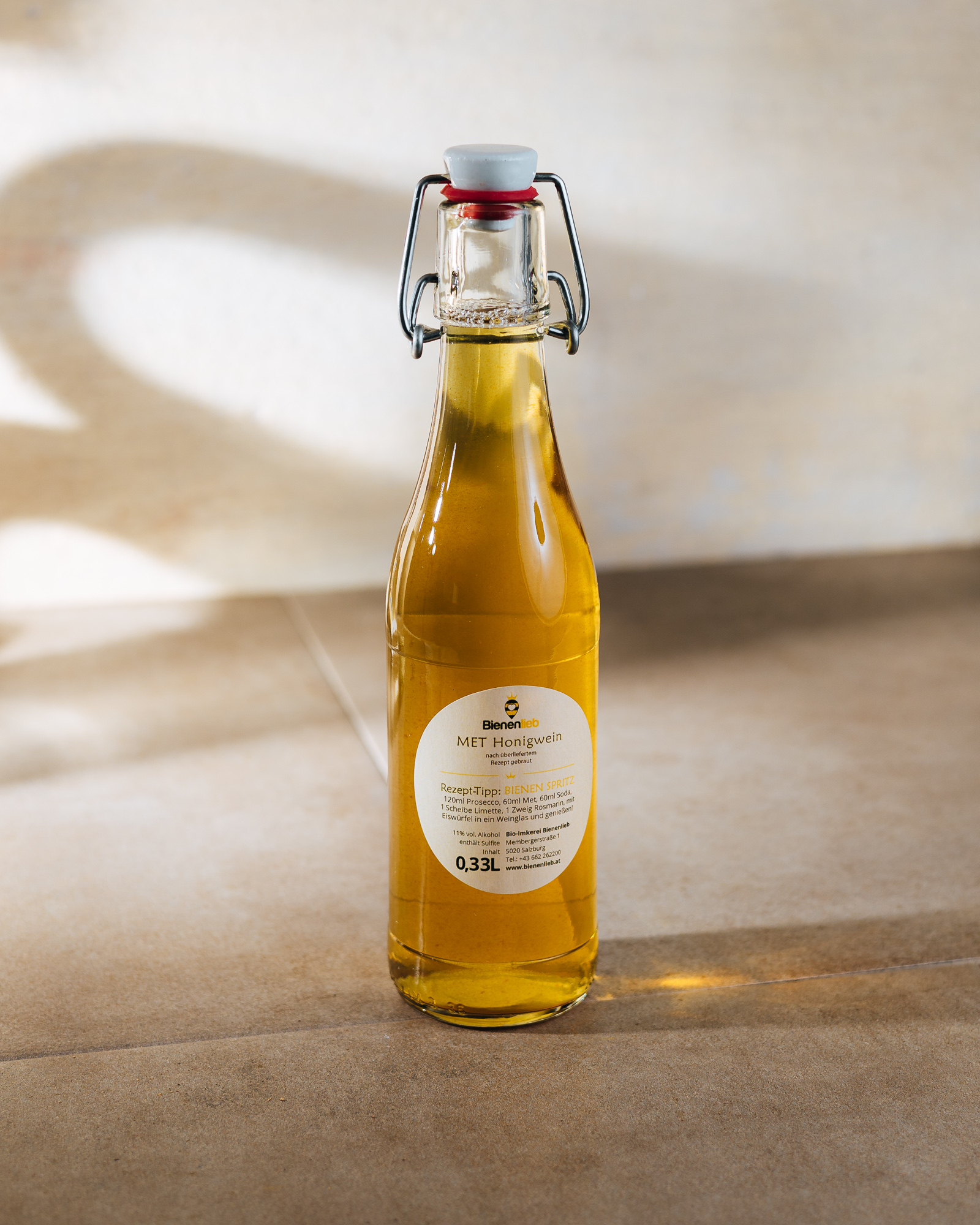 Den Met kannst du pur trinken, heiß als Glühmet, oder auch als Biene-Spritzzz: einfach mit Prosecco und Soda aufspritzen – fertig ist ein besonders leckerer Aperitif.