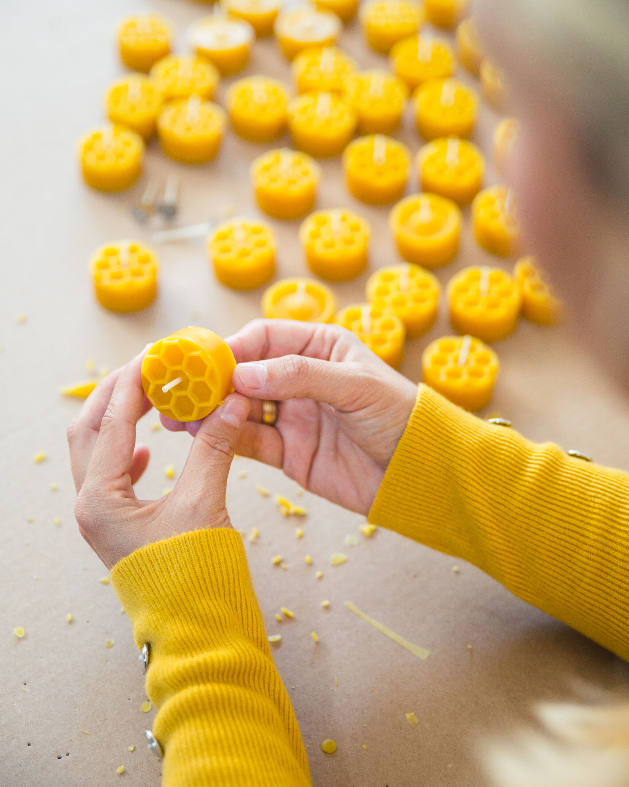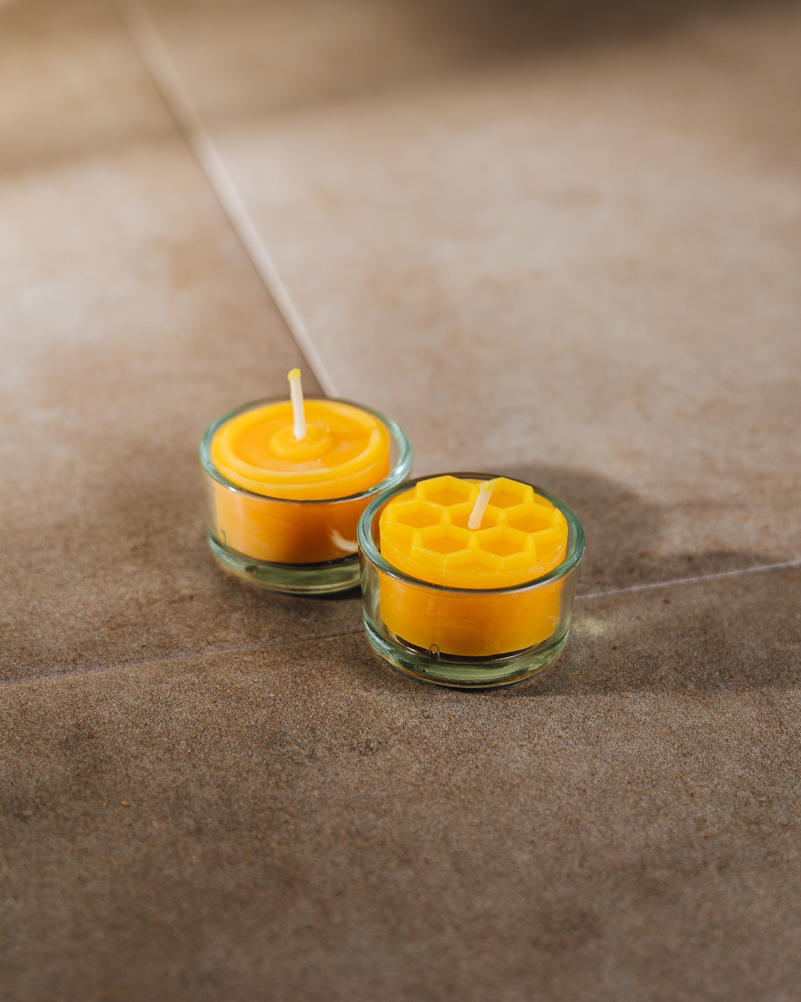 Teelichter aus reinem Bienenwachs mit zwei schönen Mustern, mit Liebe handgemacht.