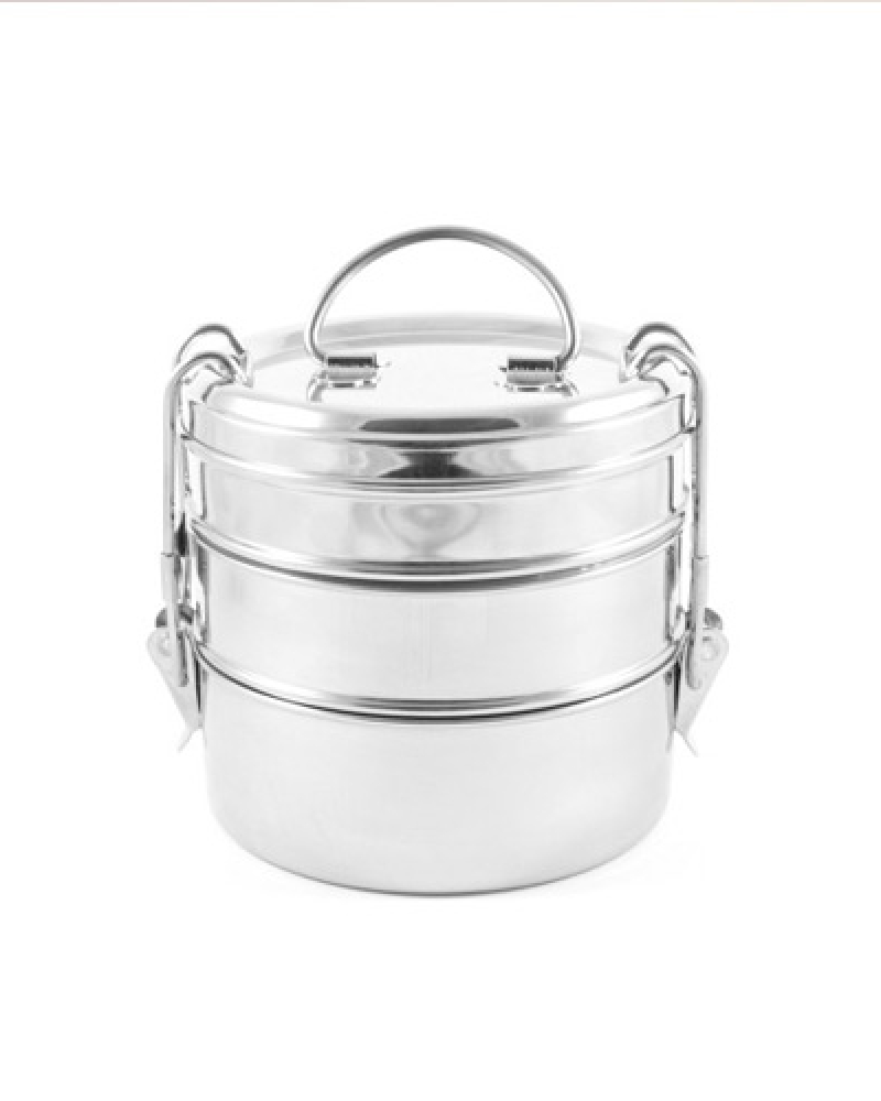 - Behälter aus einem unteren, mittleren und oberen Teil mit Deckel – für ein drei Gänge Menü zum Mitnehmen